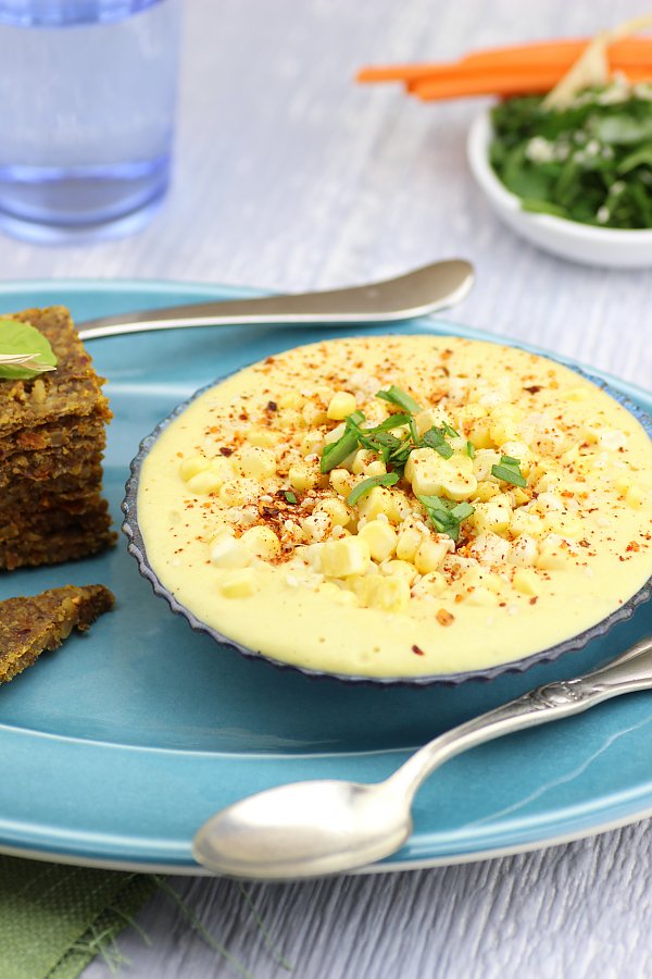 My husband loves all your raw soup recipes. I love them too and find them so filling. I am usually good with one bowl of soup for the rest of the evening! This corn soup was SO different, subtle taste and didn't taste like corn, unexpected but delicious. I love the extra ideas here (curry powder, walnuts and almonds for a change of pace) and look forward to trying them!