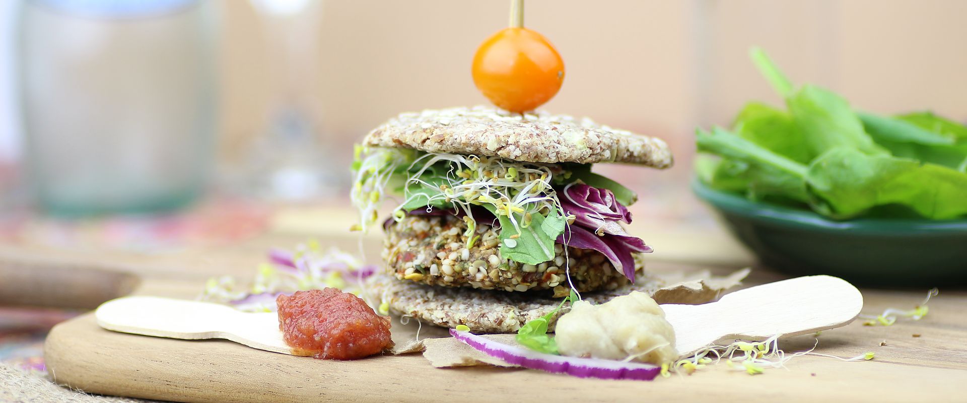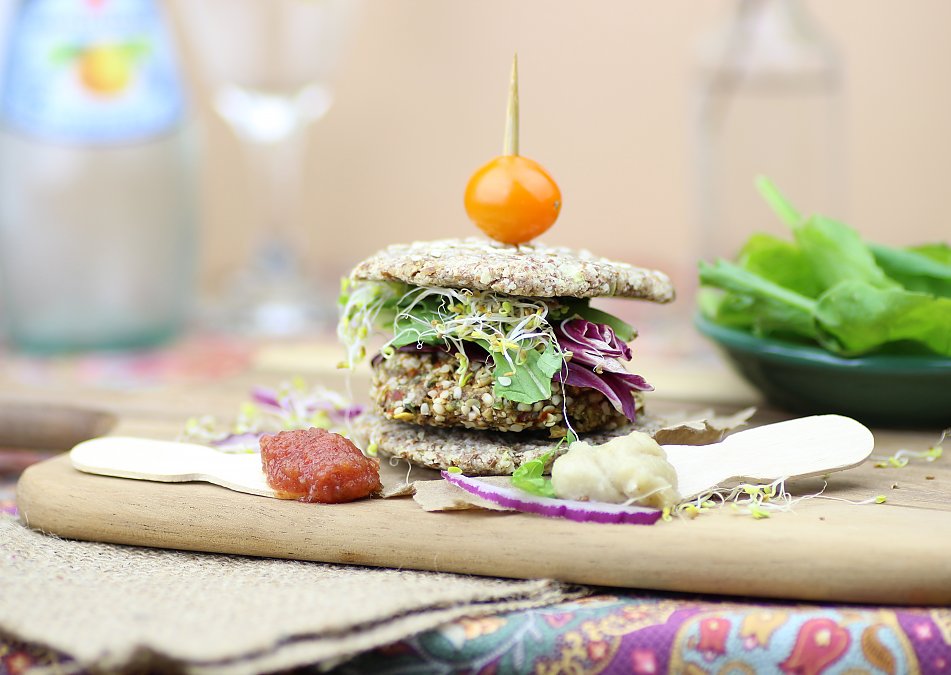 By The Rawtarian Wondering how can you have a raw veggie burger without meat or bread, etc? Just get raw-creative!