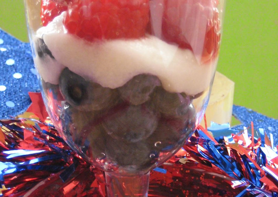 3. Put 5-6 blueberries in the bottom of a 6 ounce parfait glass.