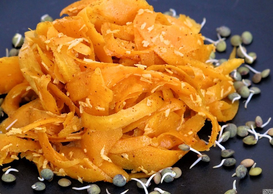 We ended up grating the butternut in the processor. Didn't have the lentils though. Good and even better dehydrated into a yummy dried crackery snack. (The leftovers that is.)