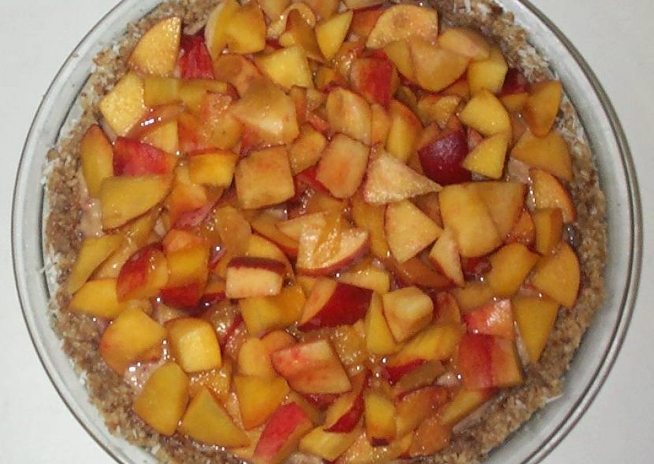 7. Arrange sliced or chopped peaches or nectarines on top of each pie. You can chill this for an hour or so if you prefer it that way.