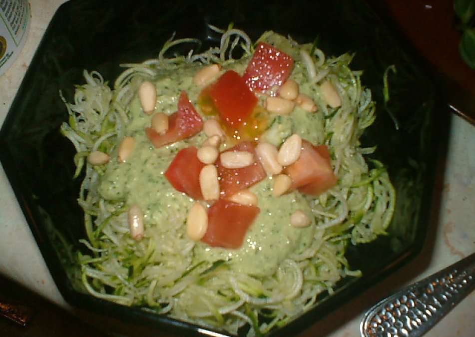 note: the texture of the of the zucchini noodles improves when they are left to sit out in the open air at room temp for a couple hours.