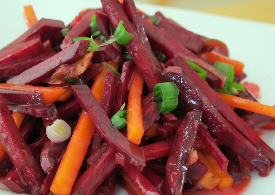 • Slice green onion and seeded cayenne pepper. Reserve several onion slices for garnish. Add the rest of the onion and pepper to the beets.