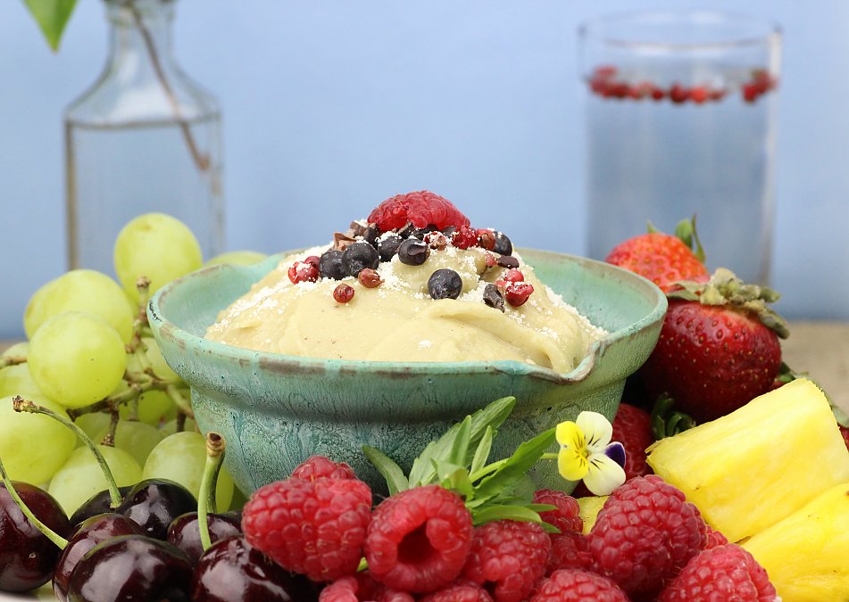 By The Rawtarian This raw fruit dip is total comfort food for me. It's the same texture as cream cheese icing, which I used to love... Creamy and almost tangy, mmm!