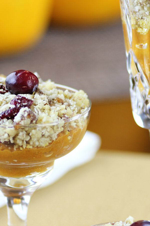 Do not combine the fruit with the crumble mixture until you are ready to eat!! Otherwise everything will get soggy. Avoid assembling the two until *immediately* before eating. Leftovers should be stored separately - one container for crumble, another container for the pumpkin mixture. Feel free to make both items and store them in the fridge in advance though.