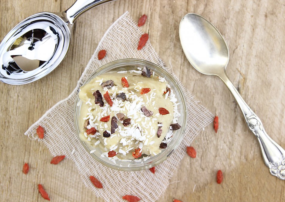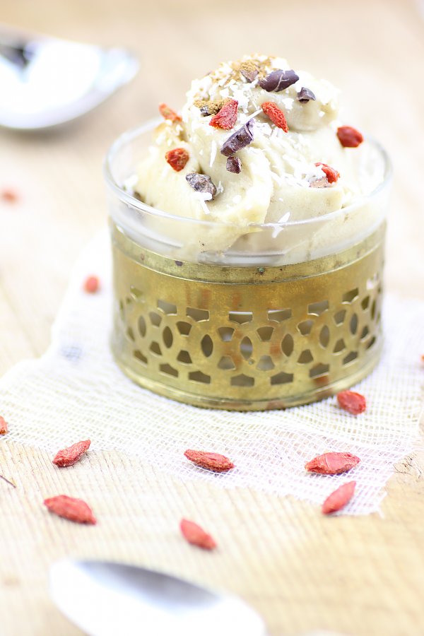 I make this yummy one often! But! I add a bit of coconut cream while im blending -- the frozen banana 'stiffens' the coconut cream very slightly and you get more of a ice-cream texture/creaminess :)