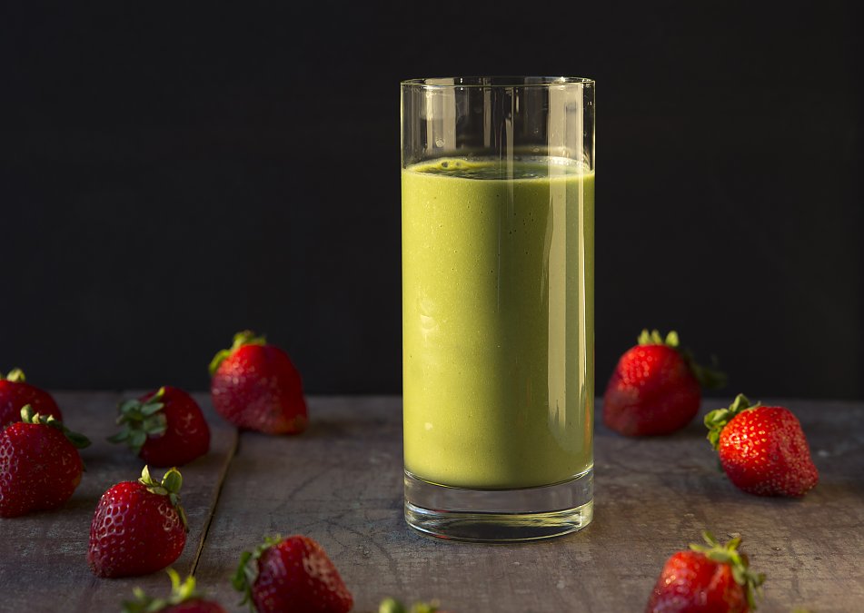 Although this lip-smacking smoothie looks green, it doesn’t taste green. It literally tastes like a field of succulent strawberries!