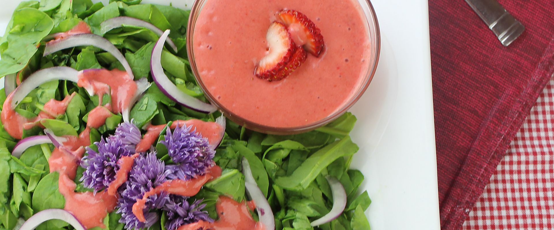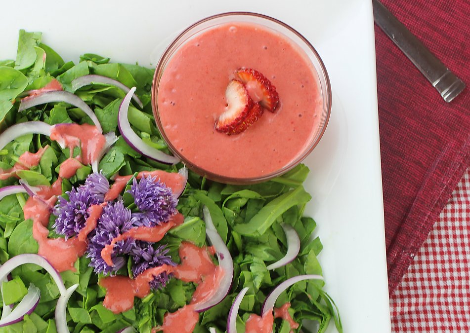 By The Rawtarian This raw strawberry vinaigrette reminds me of classic raspberry vinaigrette - but without the "grit" of raspberry seeds. And with only four ingredients, it's a snap to whip up in the blender!