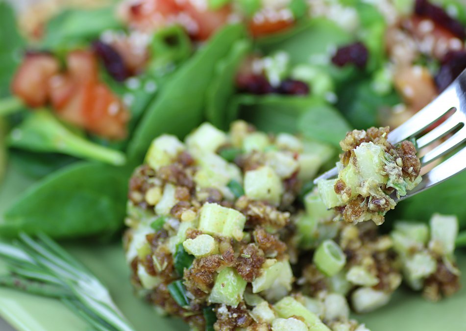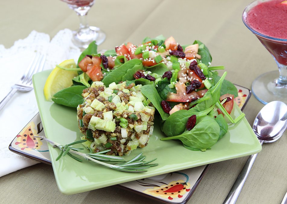 Raw stuffing is easy to make around the holidays (or any time) if you have a food processor. Key ingredients: walnuts, dates and celery.