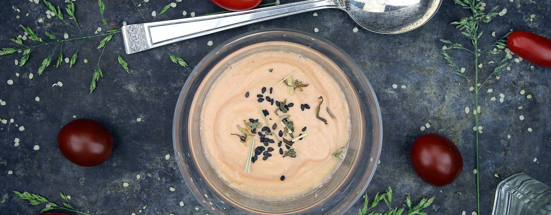 Tomatoes and cashews combine to make this superb Raw Tomato Soup. I know you might think raw soup doesn't sound appealing. But trust me on this - this soup is sooo good! It's so easy to make (just throw ingredients in blender and blend 'er up!).