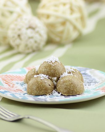 Other ingredients include coconut and a sweetener (maple syrup or agave nectar).