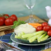 First, let's go for the obvious... throw together a big 'ol vegetable platter. Carrots, celery, broccoli, tomatoes... you get my drift! What's available at your local farmer's market? Be creative! Tempt your guests further by offering a Raw Ranch Dressing dip for their veggies. If you think nothing can compare to 'real' ranch dressing, think again! This is a must-have dip for your vegetable platter!