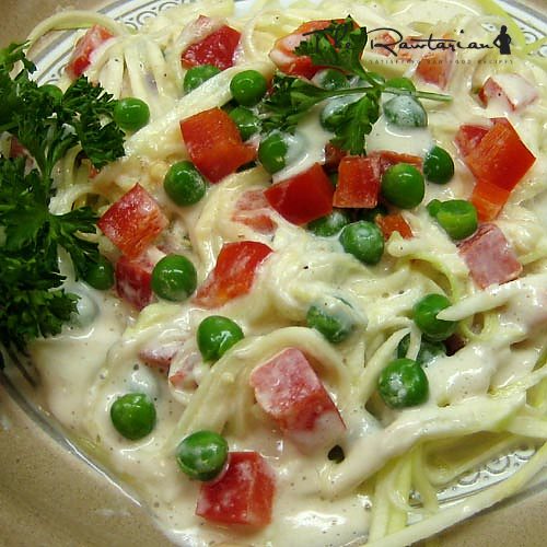 This is one amazing recipe. I subbed soaked cashews for the pine nuts. I never like SAD alfredo but sure loved this. I made it will marinated mushrooms once instead of peas and peppers, but the peas and peppers are better i think.