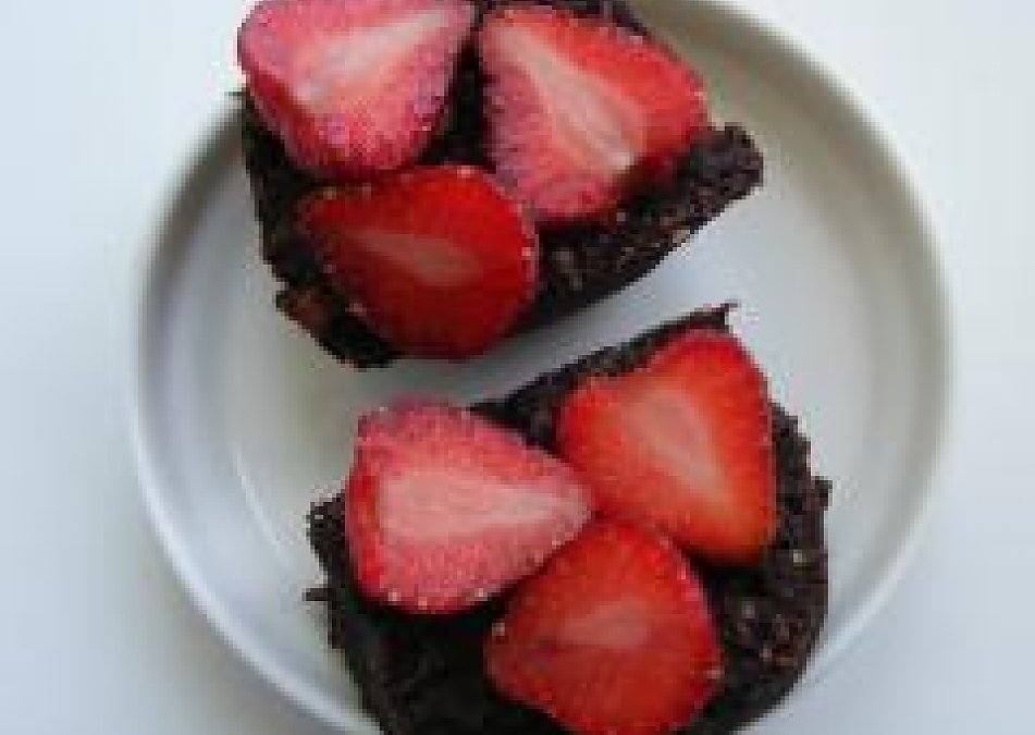 5. Cut this bar into 1" thick slices. Use strawberries for decoration.