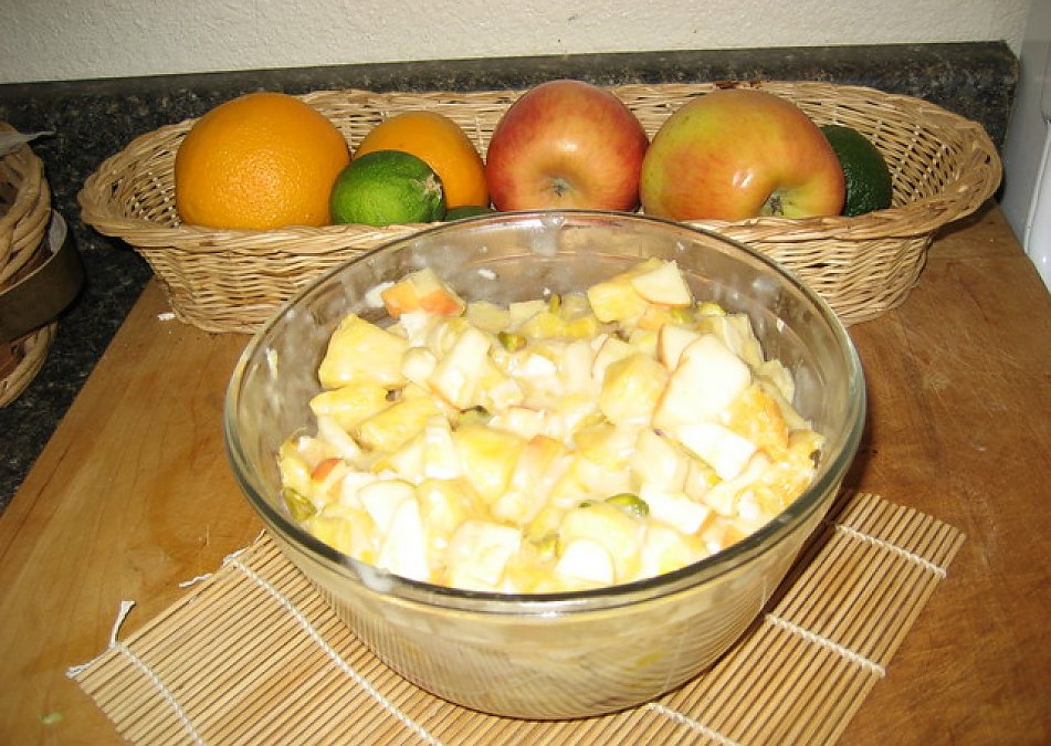 What to do with coconut meat after you drank the juice? Make ambrosia sauce for your fruit salad!
