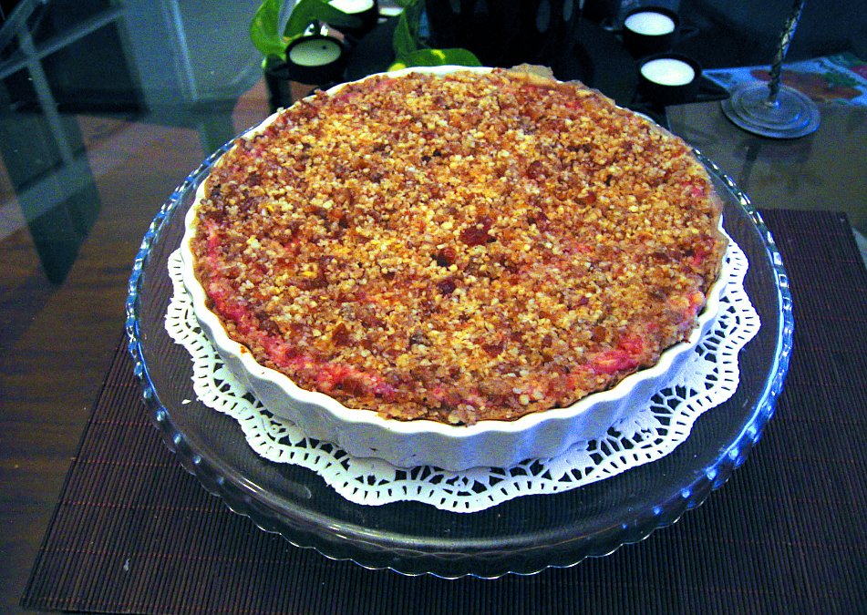 I told him I would try better and I will come up with a raw version of the apple-cranberry streusel tart we sold at our store. He was very enthusiastic and he just finished his first piece. I