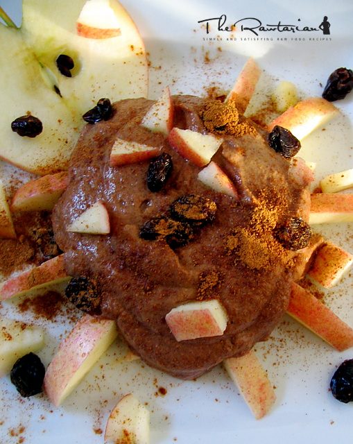 2. Pour over chopped up apples. Sprinkle with raisins.