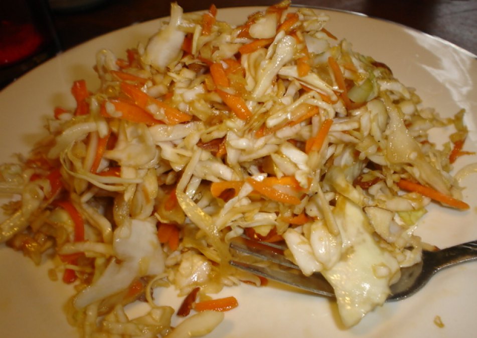 By poemomm This dish was inspired by the old salad I used to eat, containing Top Ramen, almonds, and green onions (DO you know the one I’m talking about?). There’s nothing like guilt free food that tastes “right”—and this tastes right as rain… or ramen!