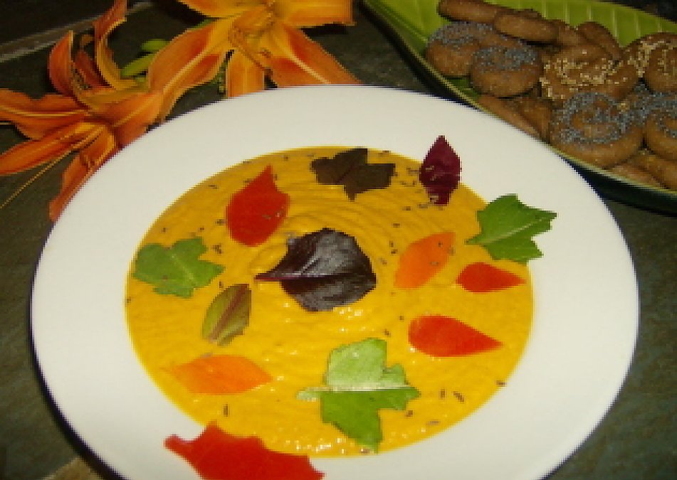 By evergreen Thick and creamy soup. Dressed up for fall.