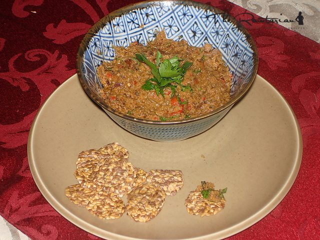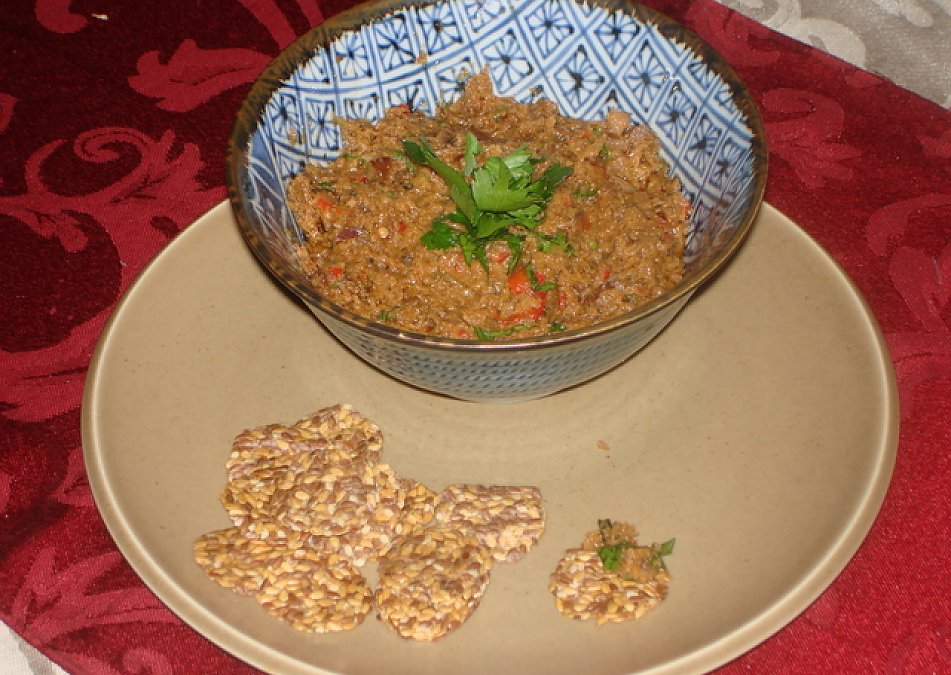 I am trying to find ways to rawify my partner; he is Arabian, and eggplant is one of the traditional staples of Middle Eastern cuisine, so, I thought I should experiment with raw baba ganoush. I partially borrowed Juliano’s recipe, and modified it. The dish came out pretty good.