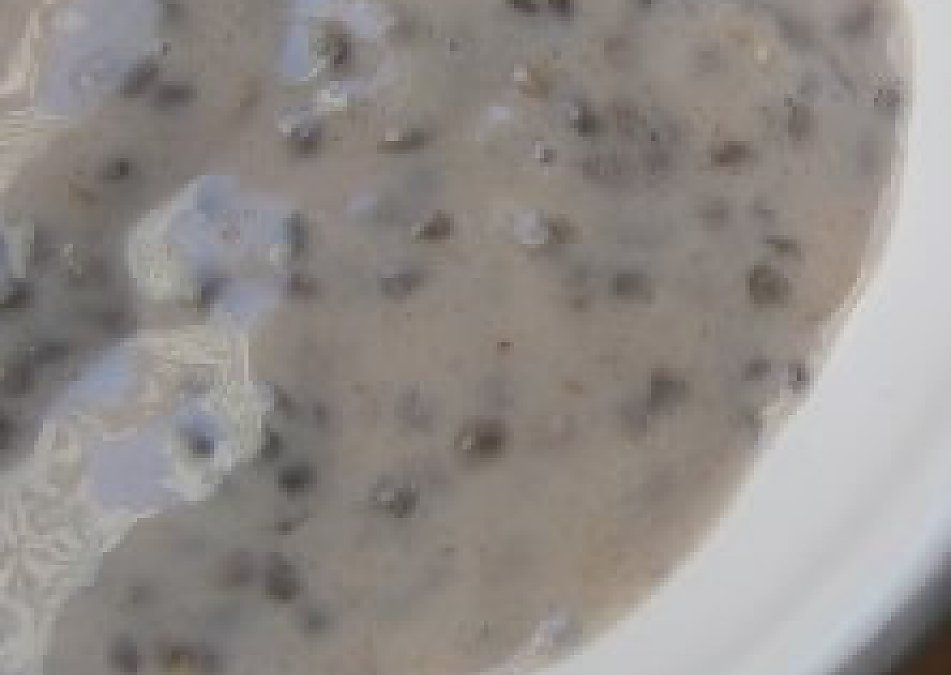 Yummy chia seed/banana dessert. Sometimes, I use the chia milk instead of the hemp milk in the chia pudding. Whole lot of chia seeds but very tasty!