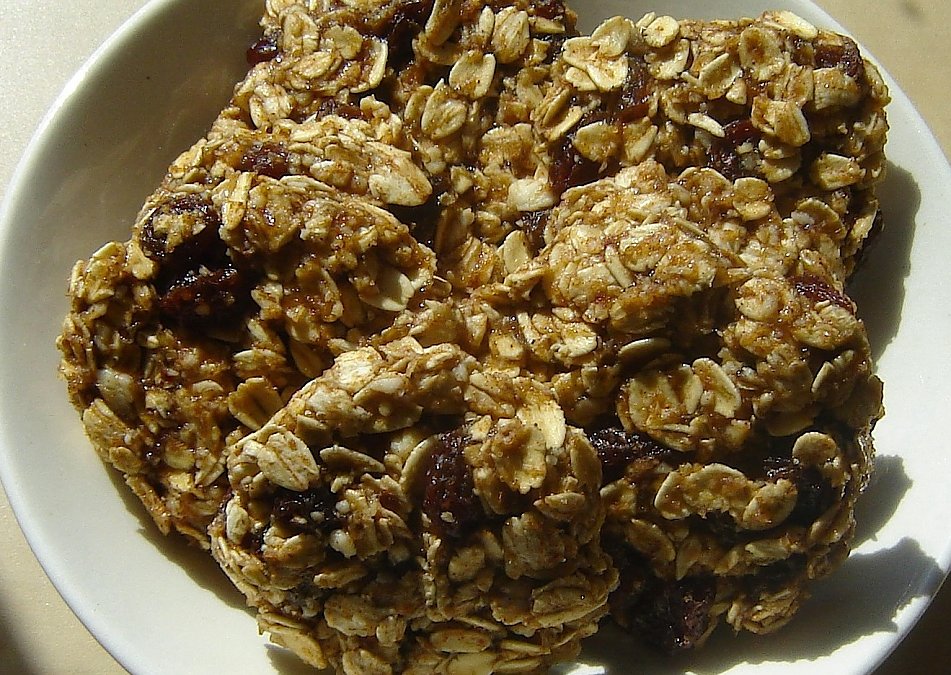 These kind of taste like oatmeal raisin cookies, only with the added wholesome sweetness of bananas, dates, and a touch of maple syrup; helping us eliminate the flour, refined sugar, and butter.