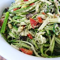 I made this recipe tonight, and I liked it a lot. I made half the proportions and watered it down a bit to use as a sauce over kelp noodles.. However, I adapted the ingredients a bit. I found I wanted more flavor, so I added 6 cloves of garlic, a bit more kelp and about 3 TBs of dulse. I used a whole container of basil from Trader Joe's for just half the recipe, so I think if I'd made the entire proportion, I would have needed a huge quantity of basil (to suit my taste buds anyways.) I think this is a good basic recipe which can be adapted for various desires. It's very filling and hearty. Thanks for the recipe!!
