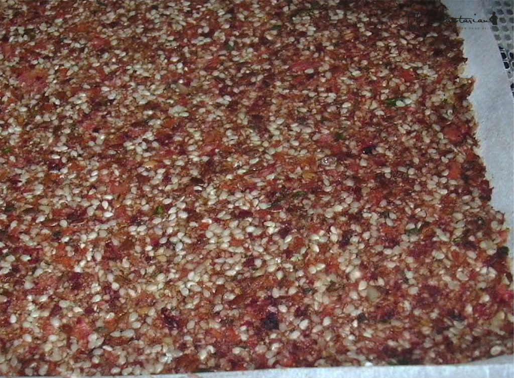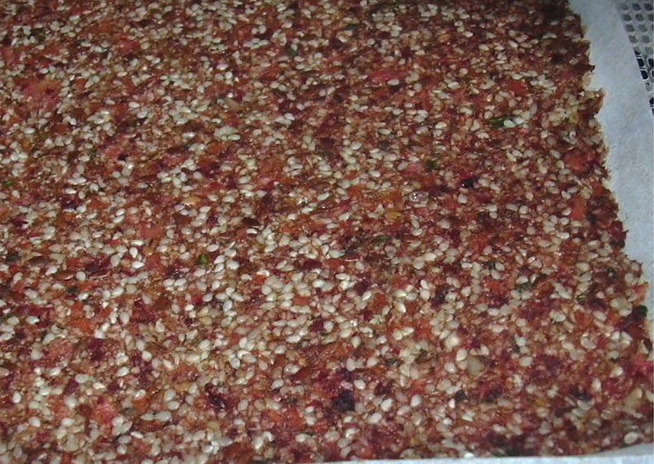 Your soaked flax seed should create a gel that will hold things together, but adding some fresh juice back into it will give it back some needed flavor. Does tahini dehydrate well? I've never thought about trying tahini before.