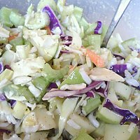 This is a crunchy, Russian salad. I found this recipe in an old cookbook and worked with it in order to add in raw ingredients.