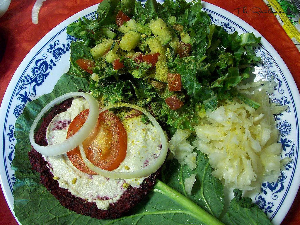 This meat substitute "burger" recipe is good raw, dehydrated, or cooked. In this version, we are keeping it raw.