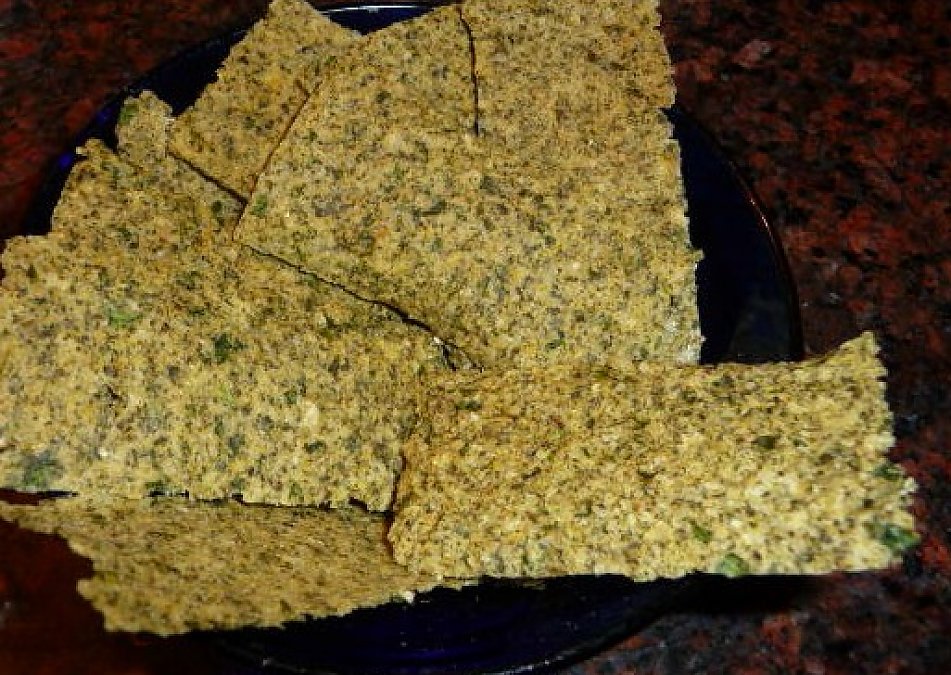 2. Lay out on one non-stick dehydrator sheet. Spread out thin. Dehydrate at 110 degrees until crisp. Score and flip onto the mesh sheet after about 4 hours. Total time is about 12-16 hours.