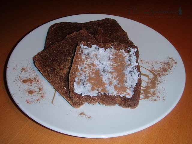 4. Spread mixture into sliced bread sized pieces on parchment paper (or Teflex).