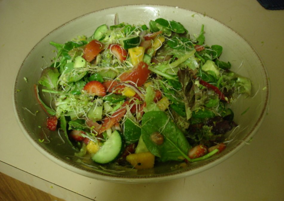This is a simple salad i quite regularly make for dinner. It’s a sweet’n’sour taste which compliments all the ingredients. Hope you enjoy it as much as i do!
