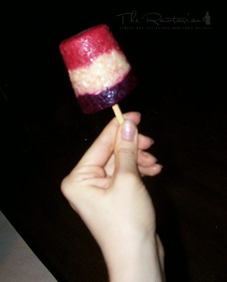 7. If your purees are thick enough, you can immediately put the handle/sticks in. But if it’s a little runny, you may want to freeze it for 15-30 minutes first.