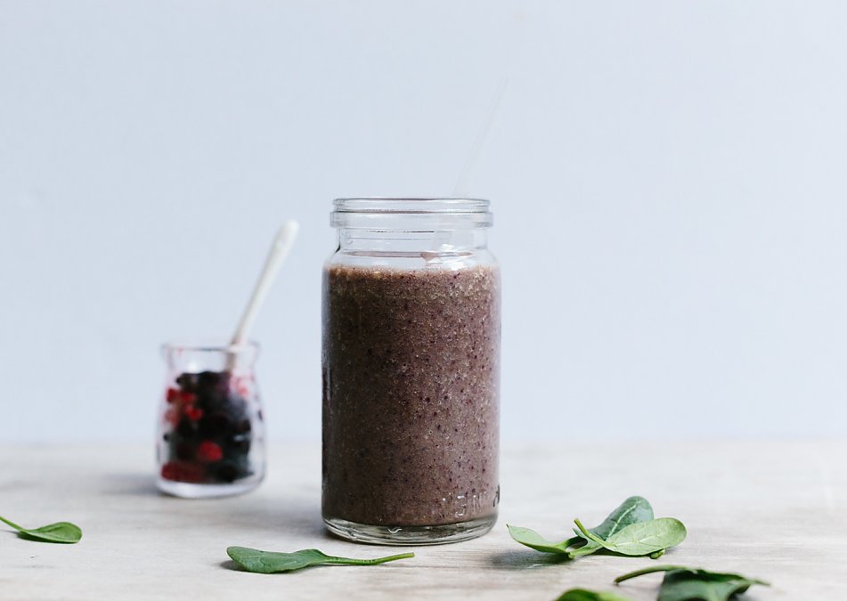 Spinach in a smoothie is the gateway to a new diet. It's almost flavourless but your body is exposed to so many nutrients. It contains fiber, vitamins A, C, E and K, thiamin, vitamin B6, folate, calcium, iron, magnesium, phosphorus, potassium, copper, and manganese. It's no wonder spinach is anti-ageing and a rich source of antioxidants.