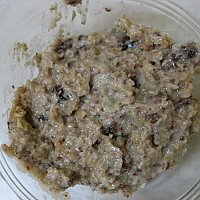 Blend everything in a blender (I’ve done it with a hand blender) until you have an ‘oatmeal’ like consistency. Add a little of the date soak water if you want it thinner.