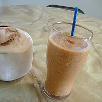 That sounds sooo good :) I've made a similar one a few times myself. I've been wondering, in recipes that call for both coconut water and coconut meat, can coconut milk be substituted to the same effect? That's what I have been doing, and the smoothies are delish, but now I am curious if using c milk instead of c water and meat gives a significantly different result...