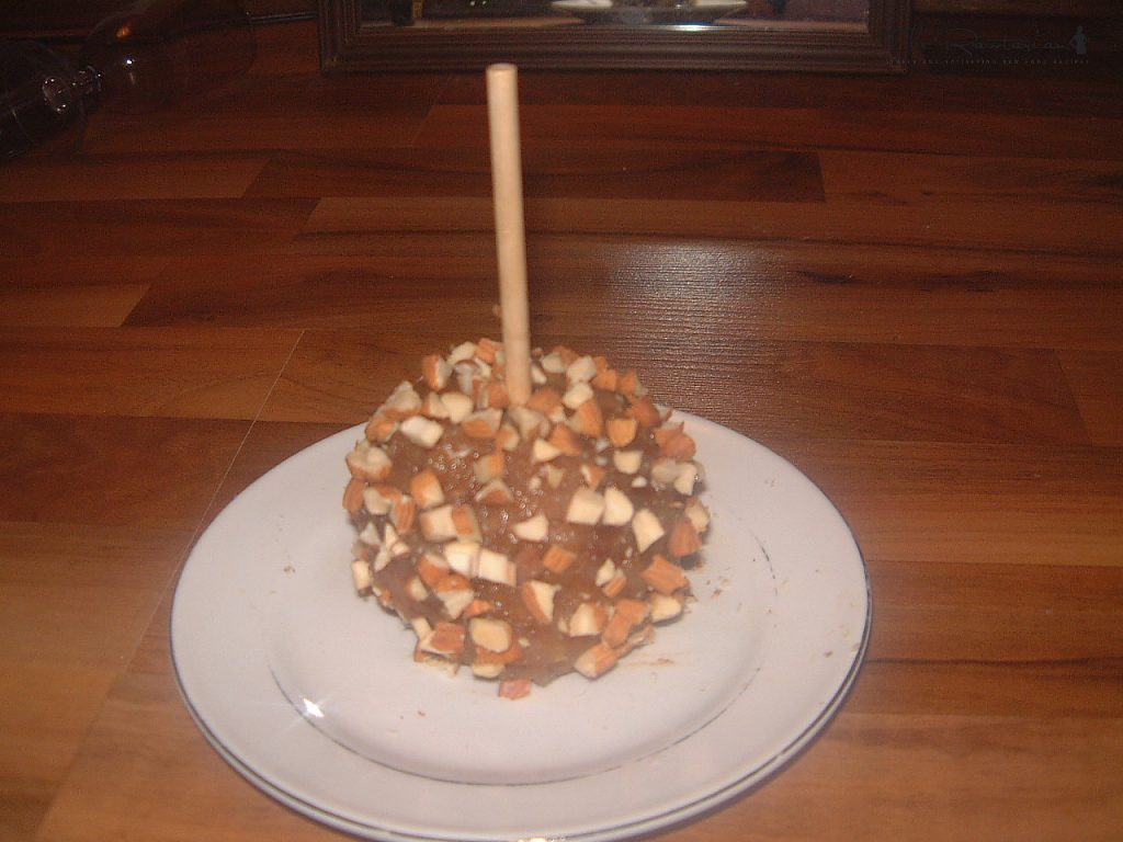 And I salivated as I cut it up for her to eat (too hard for a 3 year old to figure out the art of eating a caramel apple).
