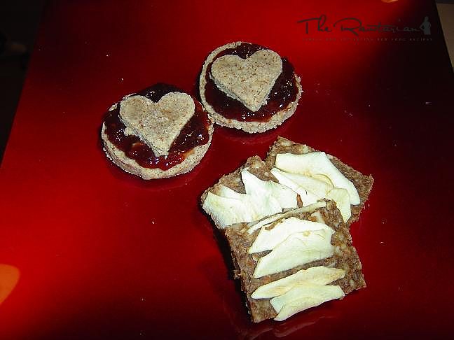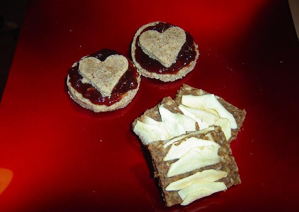 The cookies on the left are Sugar Cookies, the recipe is from a From Seed packet. I just made some jam from cranberries, strawberries and dates, and used it to sandwich the pieces together.