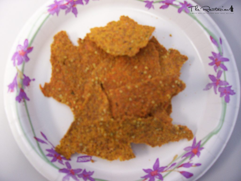 By myrawlife Light, crispy carrot chips that can be served with your favorite dip or salsa, or just plain.