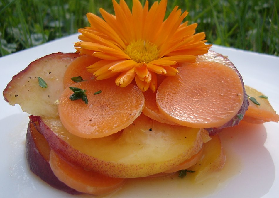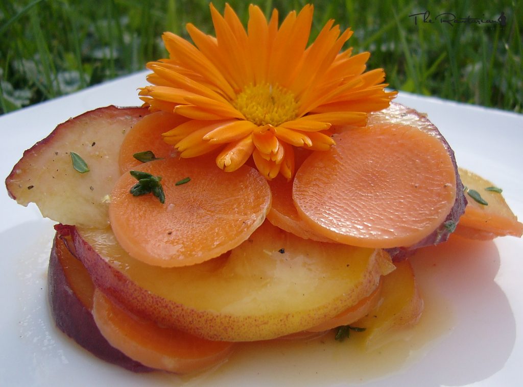 I got inspired by the last peaches of the season and the gorgeous carrots I had just picked in my garden. The flavour was great with fresh thyme.