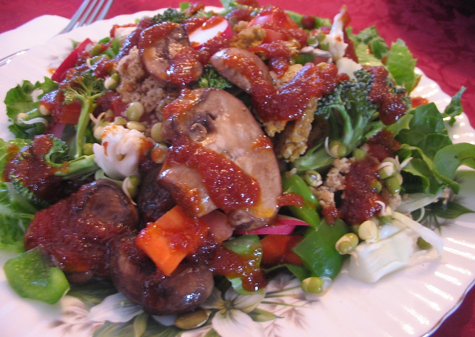 By Charis This is an incredible ketchup or BQ sauce, or a sauce for wraps or raw sushi rolls…I make it ALL the time and just love it! Definitely one of my favourites! Non-raw people just love this too…it’s really amazing because the texture gets just like ketchup if you make it thicker, and thinner, it’s a wonderful dressing! I love versitality.