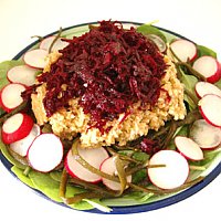 This is an original recipe... however you can improvise with soaked sun-dry tomatoes or red pepper for a color. Thank you for pointing this out