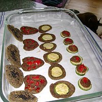 Sounds yummy write. I am trying to wean from almonds, though, in protest of the new pasteurization regulation as well as trying to decrease my fat intake. How do you think this would turn out if I used 1/2 cup sunflower seeds instead of almonds, 1/8 cup of sunflower seeds instead of cashews, and 1 3/4 cups of the carrot pulp to make up for the decrease in nuts? Does this recipe make one tray?