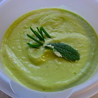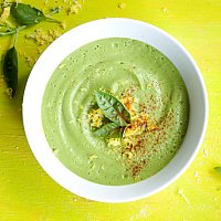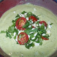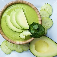 Put the chopped avocado into a blender and add approximately half of the nut milk. Add pinches of the salt and cayenne pepper and puree. Add the rest of the nut milk and process until smooth. Chill in the refrigerator for 5-6 hours, but make sure you cover it so there is no discoloring. Before serving, add the lime juice and top each dish off with pinches of fresh cilantro and/or parsley, and enjoy!