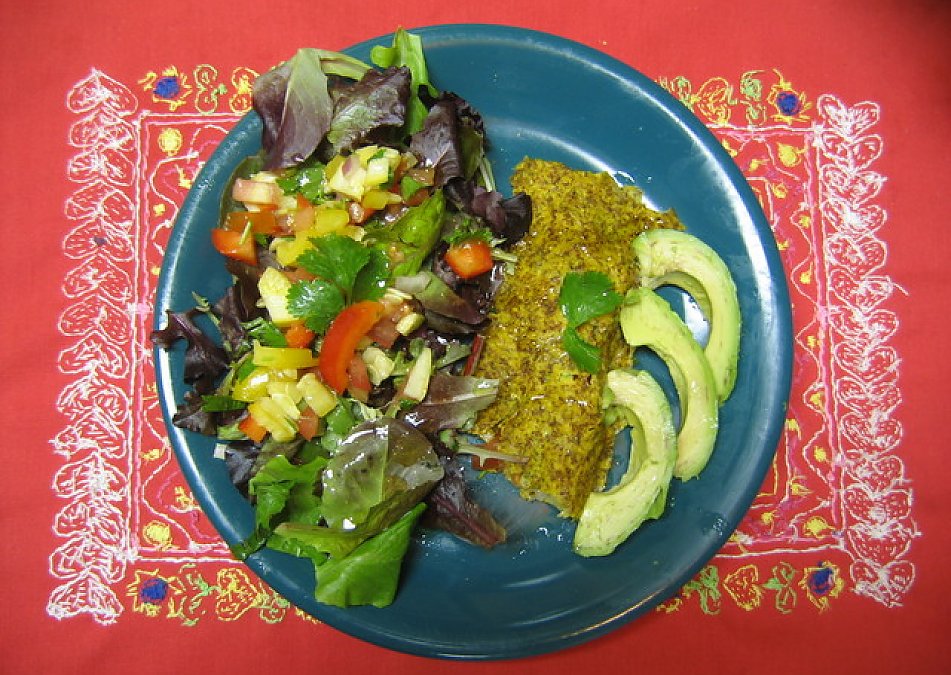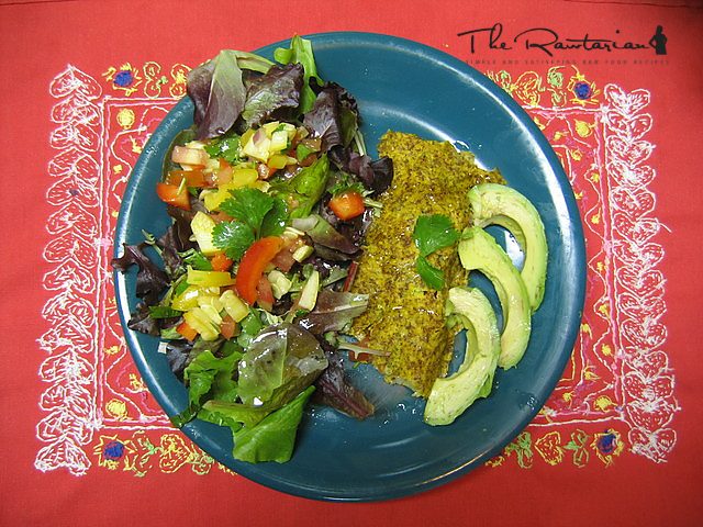 Delicious raw enchilada! The tortilla has some sweetness due to orange juice, and it has that great corny taste and texture. Marinate whatever veggies you like and enjoy this flavorful meal. Even my non raw hubby gobbled this down and kept asking for more! Serve the enchilada with some avocado on the side! The...