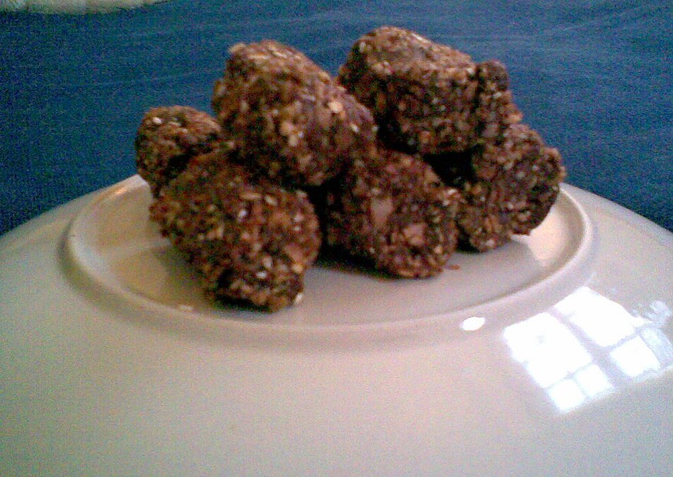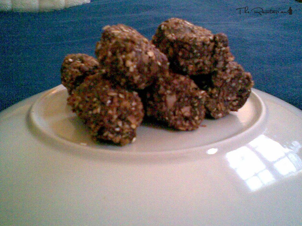 WOW! I made something very similiar to this just yesterday. I took walnuts, almonds, and pumpkin seeds (soaked and processed) then added dates and a touch of agave, along with raw cocoa and shredded coconut. I dehyrated to make quick granola bar type snacks for traveling.