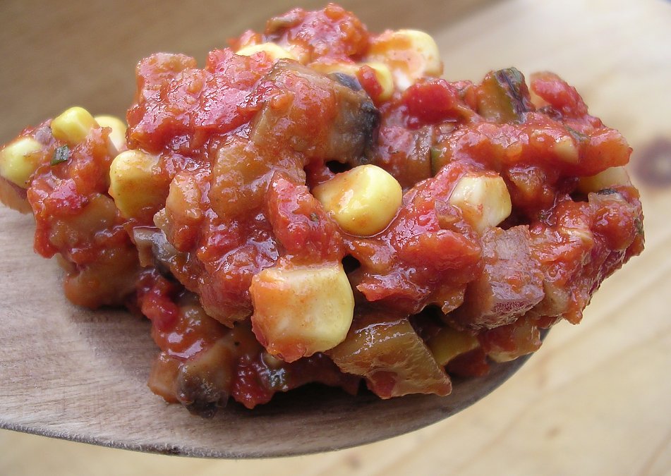 1. In a large container with a lid, mix the diced eggplant, mushrooms, sweetcorn, cherry tomatoes, garlic and onion.