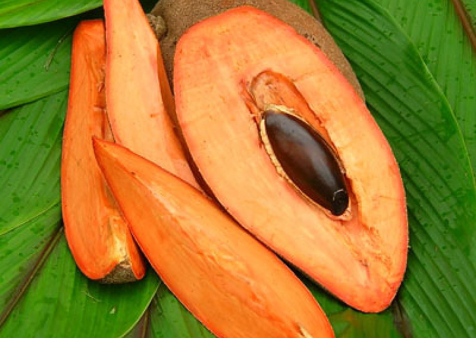 A mamey is a tropical fruit that is brown on the outside like jicama and bright orange on the inside. It tastes kind of like pumpkin pie. It is grown here where I live (in South Florida) and I assume in other subtropical areas as well.