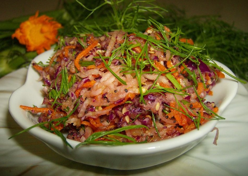 1.process fennel,cabbage,and carrot using fine shredder blade.